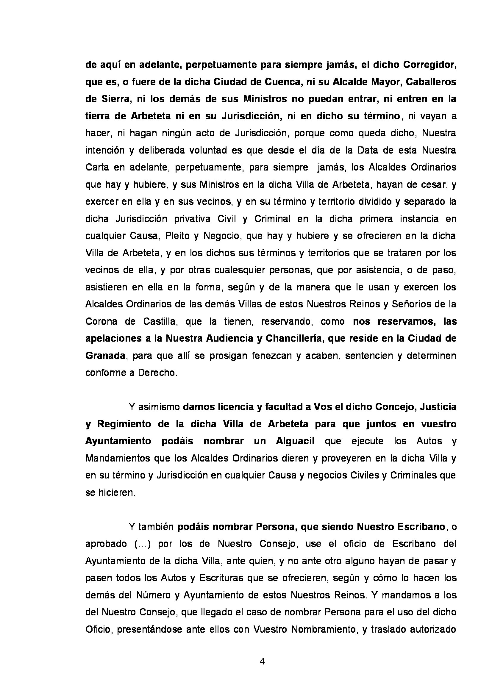 Abajo tenemos el documento completo de la Concesión de Villazgo de Arbeteta transcrito por Juan Luis López Alonso.