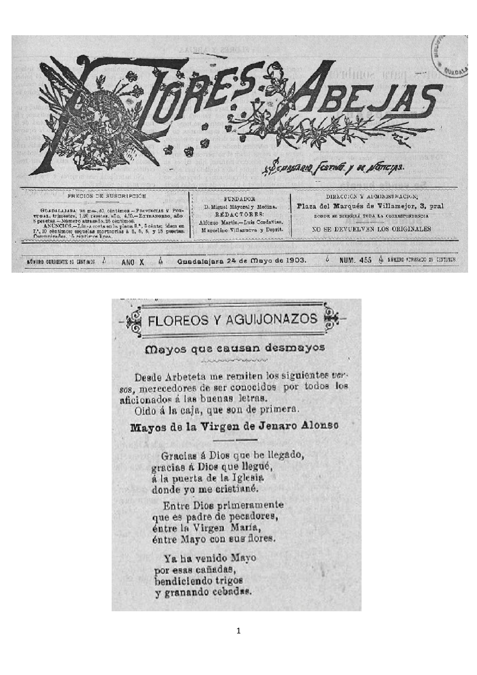 MAYOS DE LA VIRGEN escritos por JENARO ALONSO 24 de mayo de 1903