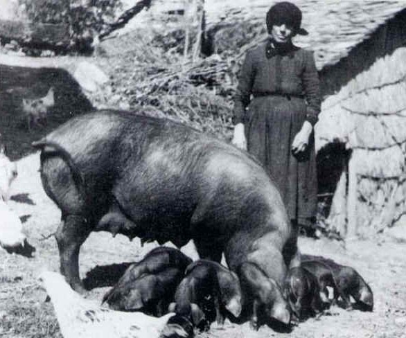 Cada casa ha criado, hasta los años 50-60 del siglo pasado, los cerdos de manera artesanal. Sólo a partir del decenio siguiente, con el despoblamiento y el abandono de las tierras por los cambios de cultivo, se pasó por los últimos amantes de la matanza, a la adquisición del cerdo criado en granjas industriales. Y ya, ni eso. Dejamos al cerdo engordando en su corte al cuidado del ama de casa. El cerdo ya ha engordado lo suficiente y se acerca el día de la matanza, pero eso ya es para  otra historia.