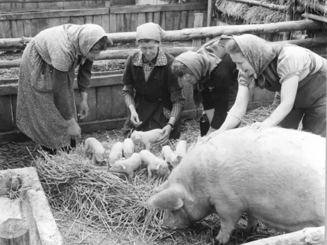 Hemos de decir que, al igual que otras pesadas cargas, el cuidado del cerdo corría a cargo de la mujer: Algunas de nuestras vecinas tenían hembras reproductoras ( yo he visto la que tenía la tía Isidora Costero , con sus lechones blancos y negros).  Las últimas cerdas las tuvieron «la tía Julia ( Julia Alonso) , Cipriana Costero, que tenía 3 o 4 cerdas, la tía Ignacia , la Eusebia y su marido Juan Aguado «el Juanillo»  ; el verraco lo tenía Feliciana Alonso. Se calculaba cuando convenía que pariese la cerda para llevarla al verraco. A los chicos les hubiese gustado supervisar esta operación , pero las mujeres se encargaban de echarlos.  La cerda cuando queda preñada se la separa del verraco y se pone en una corte sola, limpia y bien alimentada. Después de 16-18 semanas pare, por lo que puede tener dos partos en un año. Recién parida convenía alimentarla bien para que no se comiese sus propias crías. A los 15 días a los lechones  ya se les permitía salir de la corte a pasearse por el corral. Para el destete se les daba harina desleída en agua, con un mes  se les empezaba a dar comida normal apartados de otros cerdos.