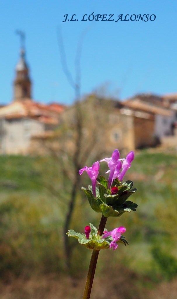LAMIUM AMPLEXICAULE. Zapatitos de la Virgen, ortiga muerta menor, ortiga mansa. Como planta medicinal tiene numerosas aplicaciones. Florece a finales del invierno. Es la primera flor del año que hemos visto en Arbeteta. Tiene propiedades gastronómicas.
