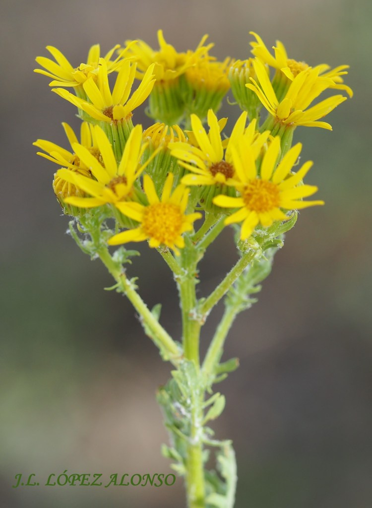 SENECIO JACOBAEA. Hierba de Santiago. Muy corriente en terrenos abiertos y márgenes de caminos, sobre todo en zonas frescas. Planta tóxica, especialmente para el ganado. Tiene un periodo de floración largo, que dura desde junio hasta noviembre.