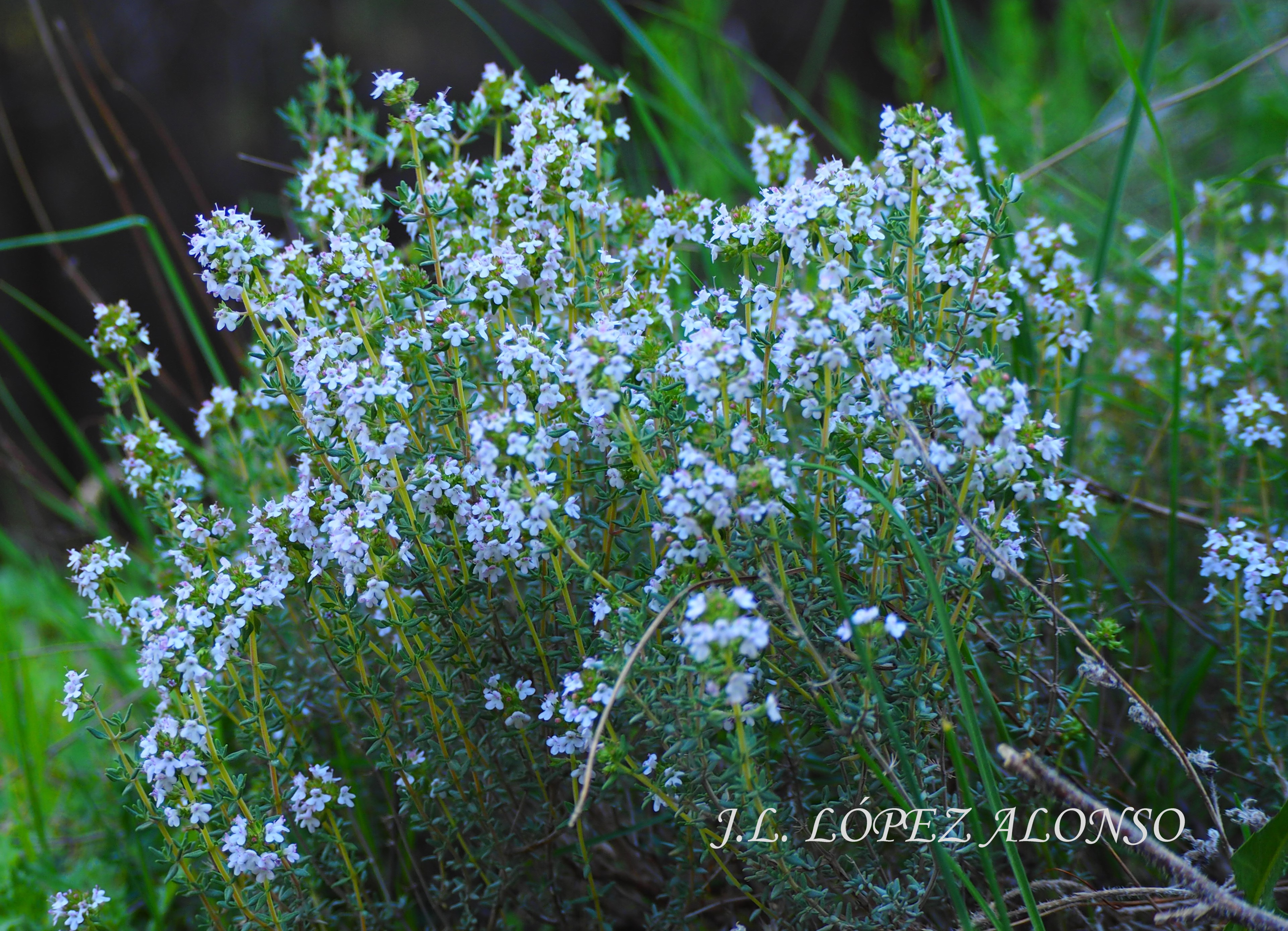 THYMUS VULGARIS (tomillo): Planta muy abundante en Arbeteta, floreciendo en abril y mayo. Planta con mucho uso culinario, farmacológico y en la elaboración de perfumes.