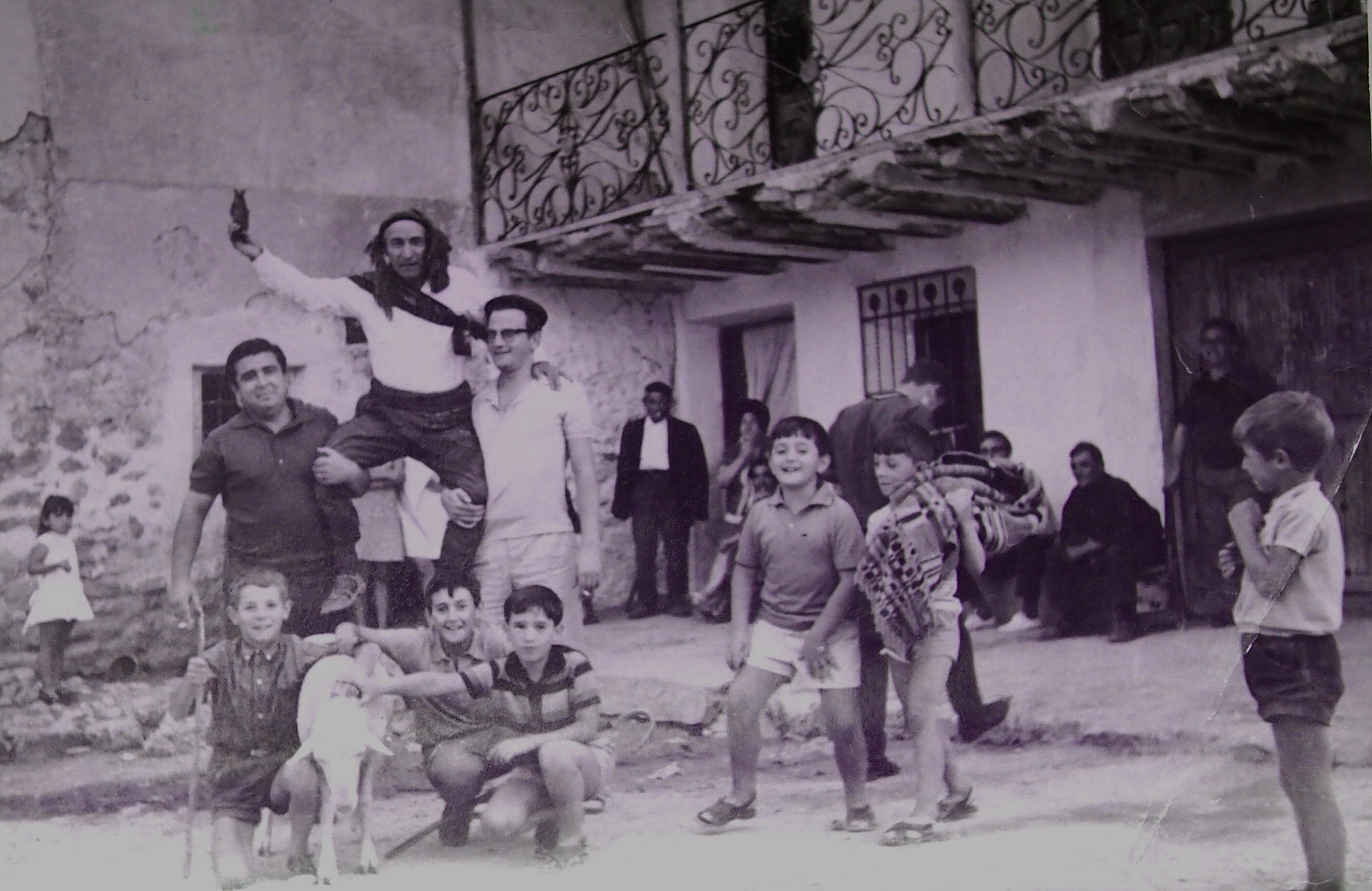 Donato con su carnero y con los chicos del pueblo