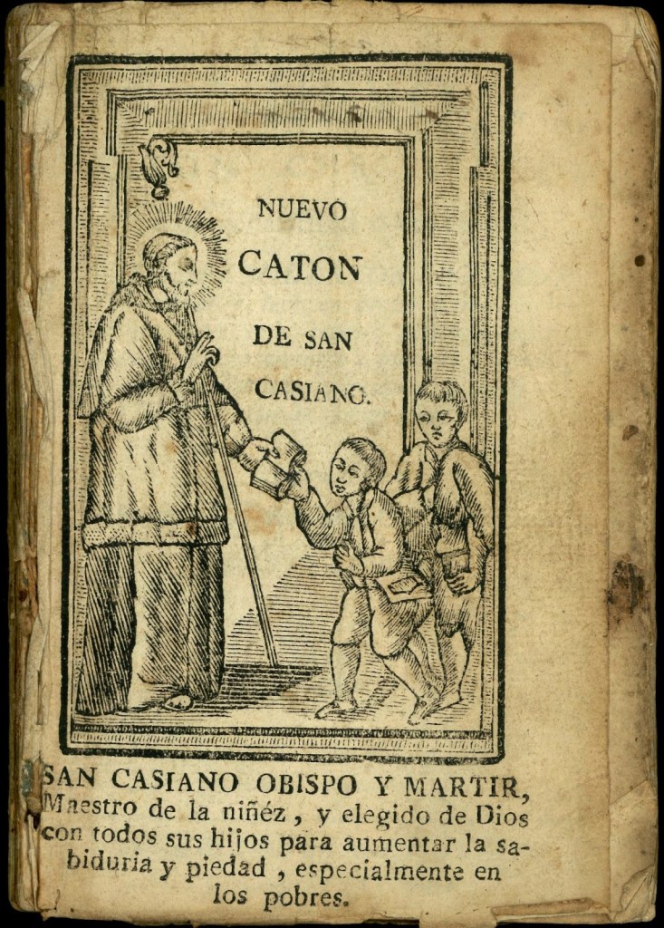 Nuevo Catón de San Casiano, editado en el siglo XVII, época de constitución de la Hermandad del mismo nombre, gremio que agrupó a los maestros .. La corporación de San Casiano examinaba a los candidatos a maestro y vigilaba la enseñanza dada en las escuelas.
