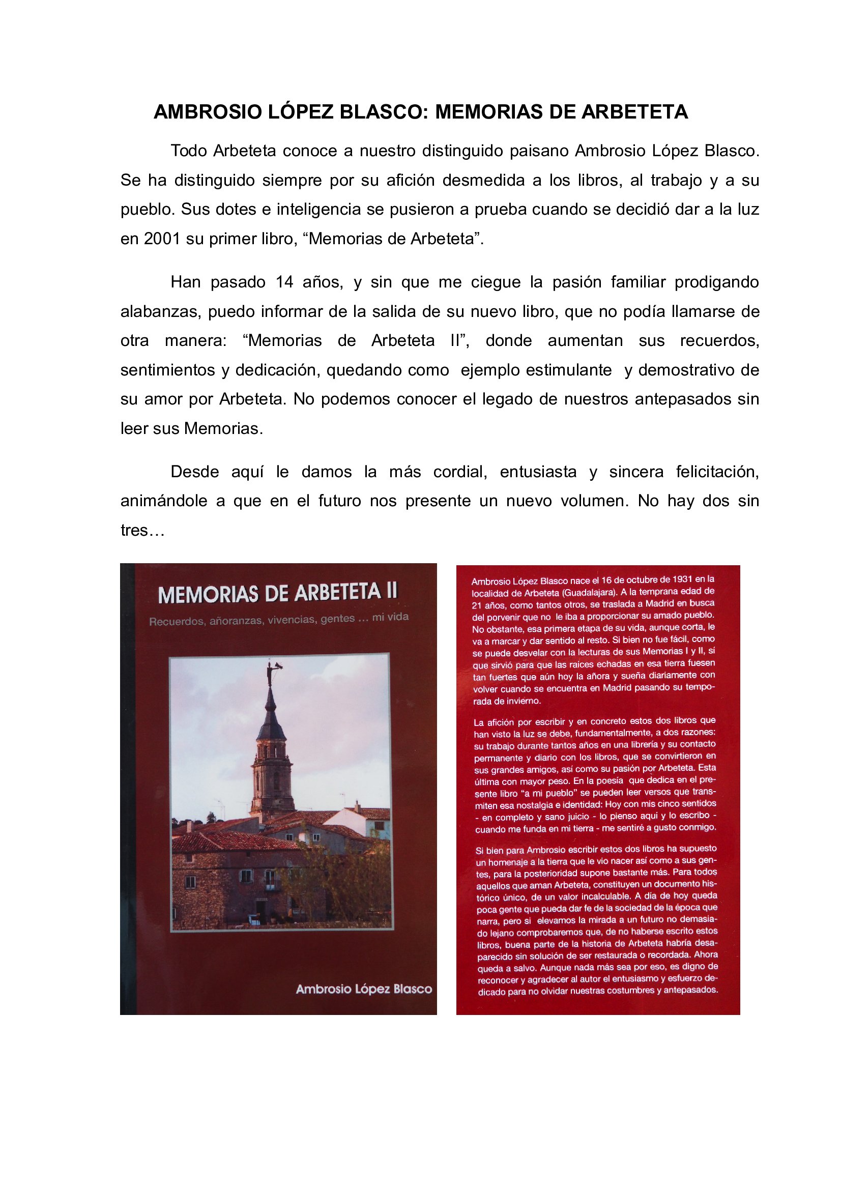Historia de la Villa de Arbeteta (Guadalajara)